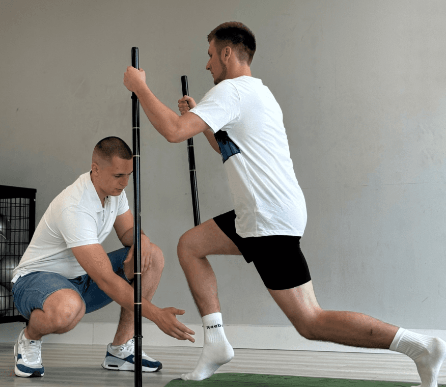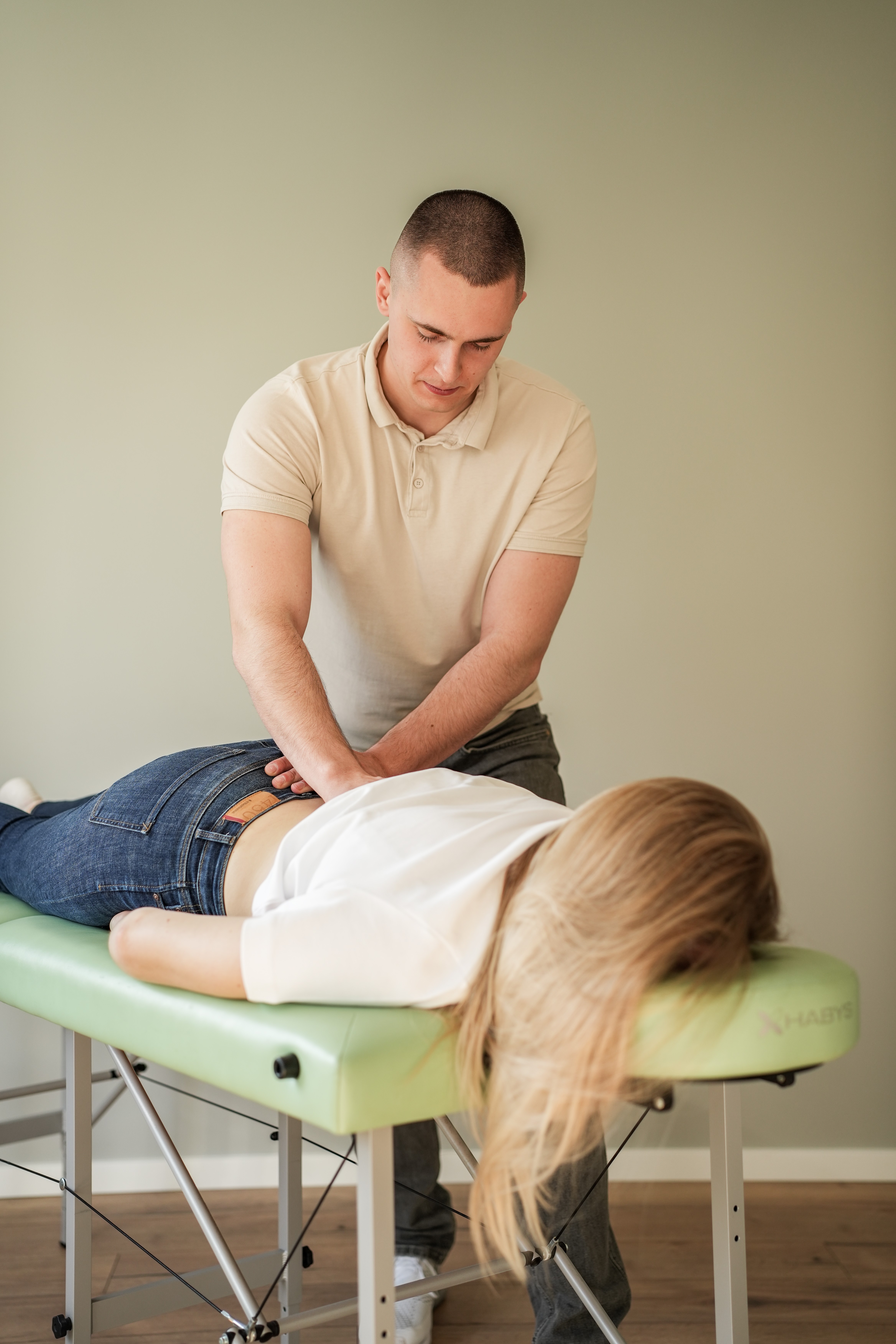 Efekt terapii: Po manualnym opracowaniu miednicy i kręgosłupa lędźwiowego, reaktywność mięśni wróciła do normy. Mateusz zgłosił zmniejszenie bólu o 80-90% już po pierwszej pracy. Całość domknęliśmy planem treningowym, by zabezpieczyć kolana na przyszłość.
